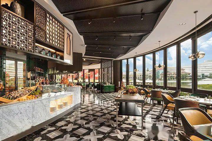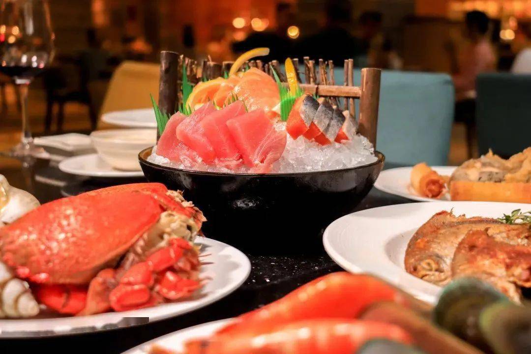 优雅时尚的园景咖啡厅,提供异彩纷呈的饕餮盛宴,带您领略独特的环球美食之旅。汇集海鲜刺身档、熟食档,现煎扒档、烧腊档、面档、甜品档... 多个档口等着你来打卡;三文鱼刺身、生蚝、面包蟹、花螺,牛扒、羊扒、鸡扒、德国脆皮猪手...这些随便吃!实现肉食自由!