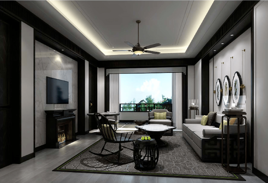 广州施柏阁大观酒店位于文旅城中心湖畔,其设计灵感源自岭南民国时期的官邸,空间布局讲究对称、庄重的仪式感。