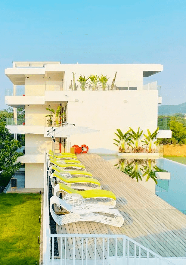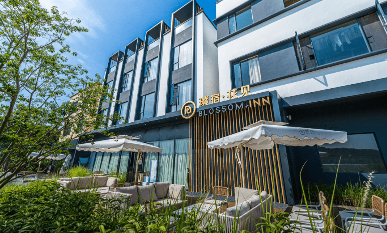 民宿由主楼和以“聚会婚礼”为主题的花乡小院围合而成,契合年轻人对生活追求的简洁舒适以及精致浪漫,恬静安逸。