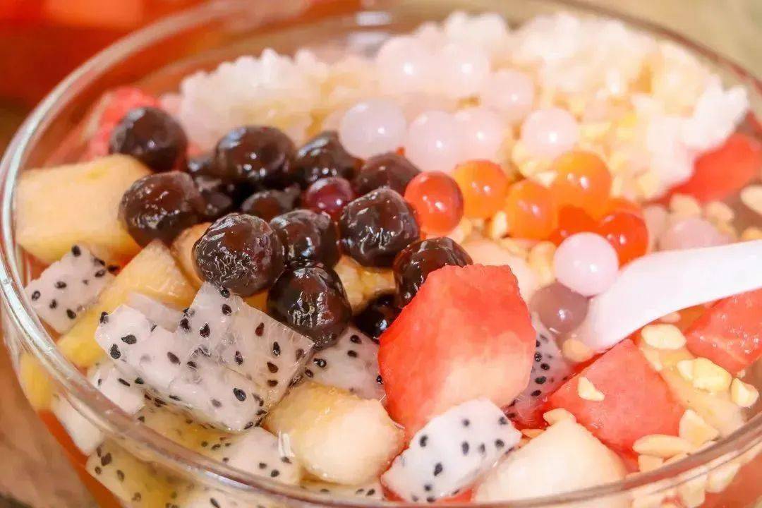 冰粉本身是用木瓜籽做成,再加上满满的新鲜水果块、坚果碎和冰块,入口清凉爽滑,沁人心脾。安顺冰粉有多种口味可以选择,加入水果的甜,搭配红豆和坚果碎,简直幸福感爆棚。