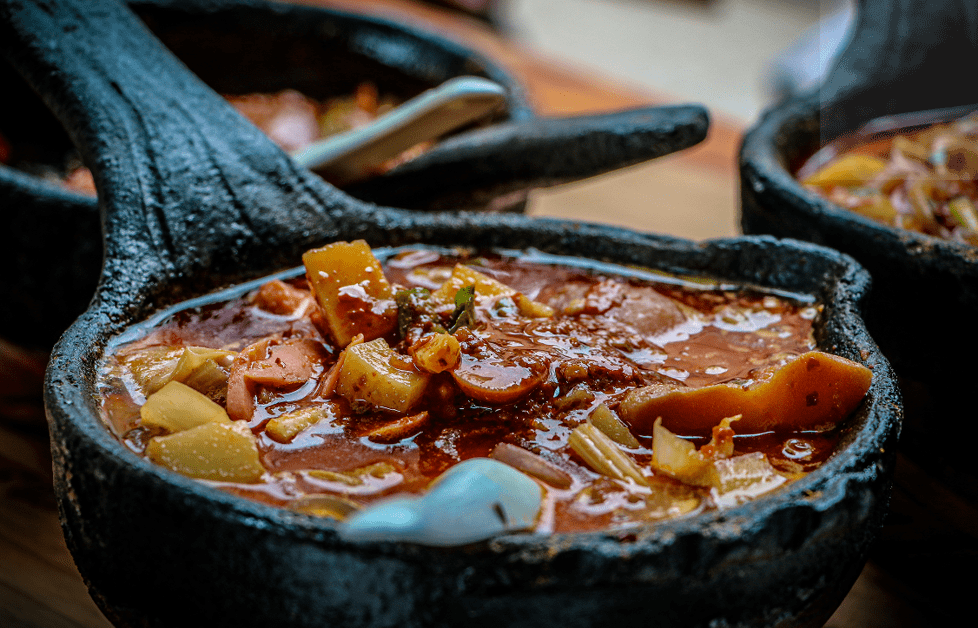 安顺最具有特色的代表小吃莫过于夺夺粉,这种类似于米豆腐的凉粉,和你想象中一人一份的那种碗粉不同。夺夺粉采用的是火锅吃法,即锅内自带排骨、芹菜、豆芽之类的食材,然后大家围坐一团,将夺夺粉等食材慢慢炖煮。