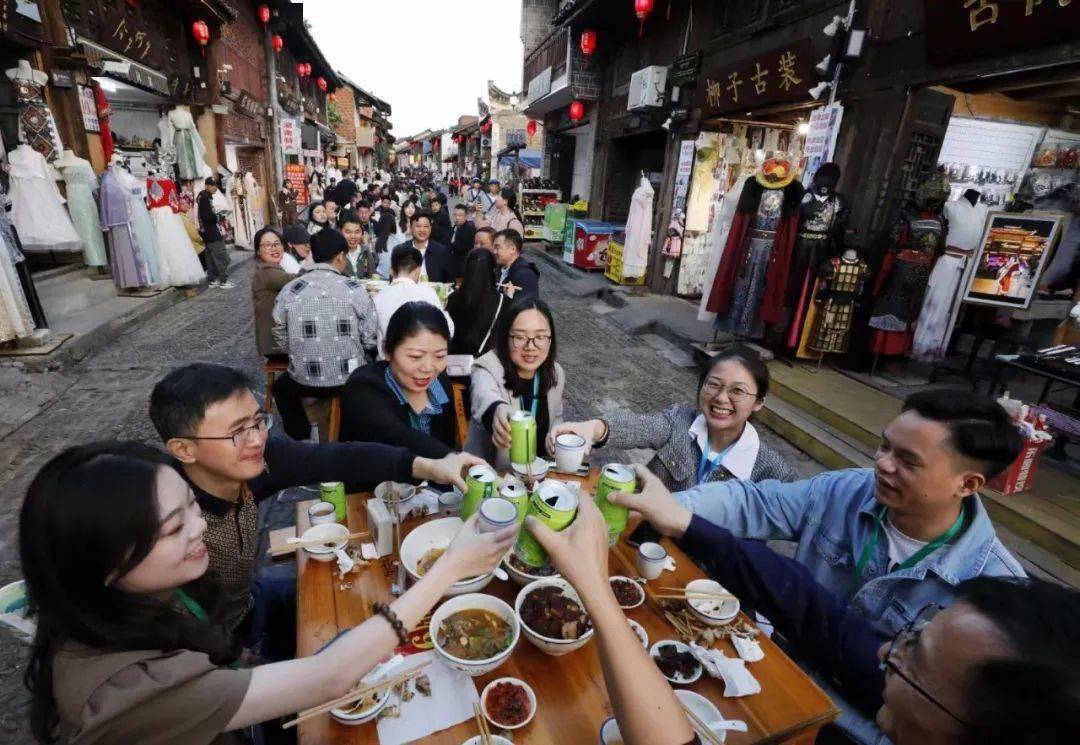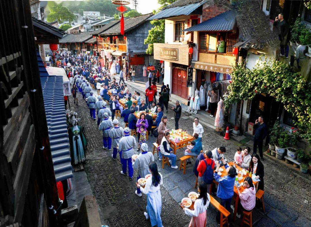 柳子家宴现场,八仙桌沿长街整齐摆放,大红灯笼高高挂起,熙熙攘攘的人群陆续入席,宴乐响起,司仪主持、厨师穿梭往来,佳肴美润,话语熟香,气氛热烈和谐。柳子大三鲜、龙青素扣肉、小石潭清水鱼……柳子家宴的魅力还体现在具有特色的菜肴,它不仅具有零陵地方美食的传统风味,还融入了柳子故事及民间传说,成为一道独特的美食风景线。