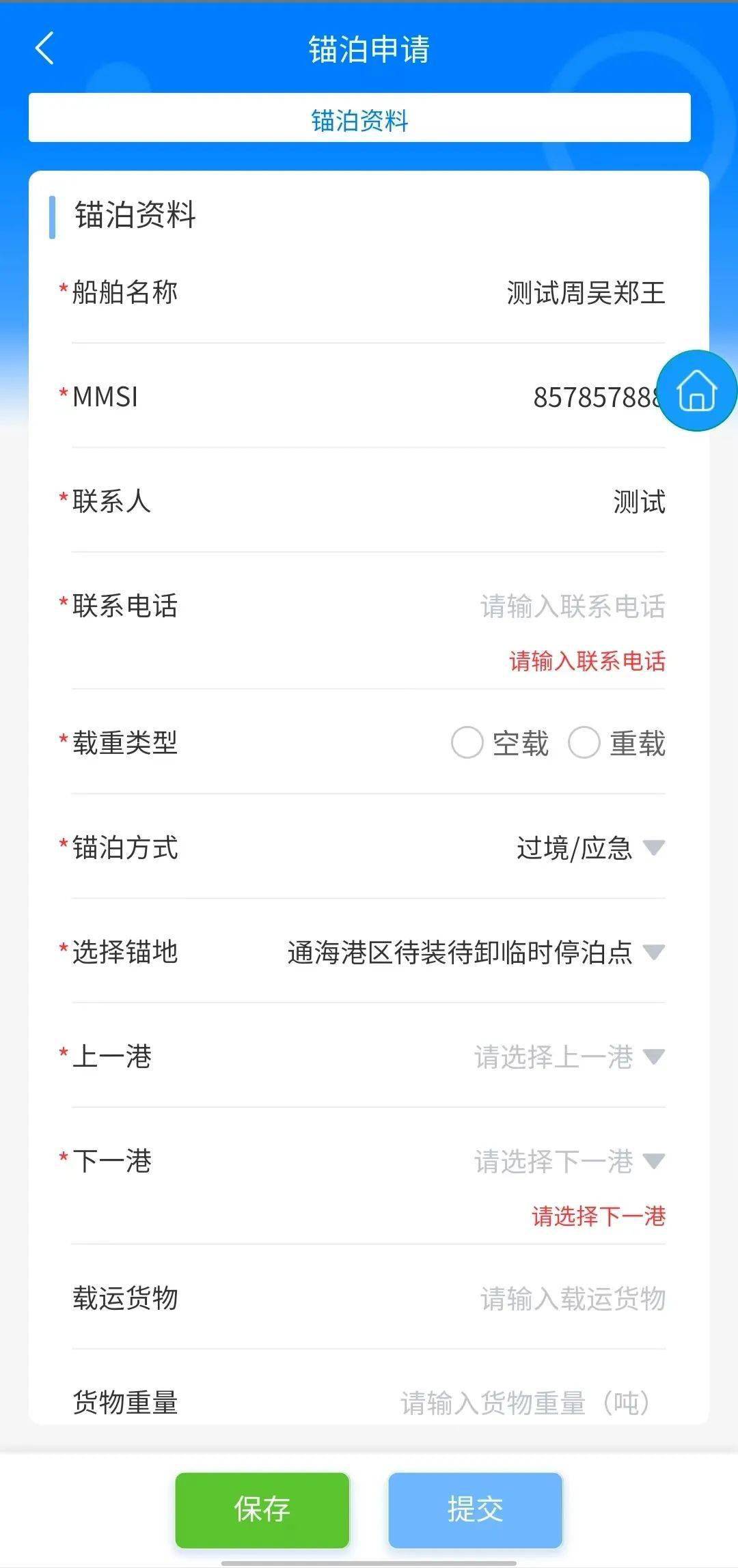 06 选择新增锚泊申请,填写锚泊申请,带*为必填项