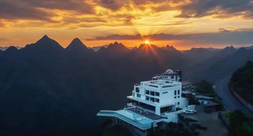 黄果树尧珈·望瀑民宿位于关岭自治县坡贡镇凡化村,这里群山环绕。晨起时,映入眼帘的是薄雾中若隐若现的连绵青山。日暮时,是夕阳西下的浪漫美好。