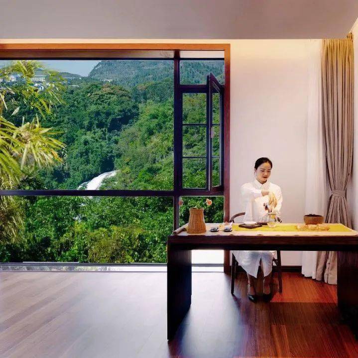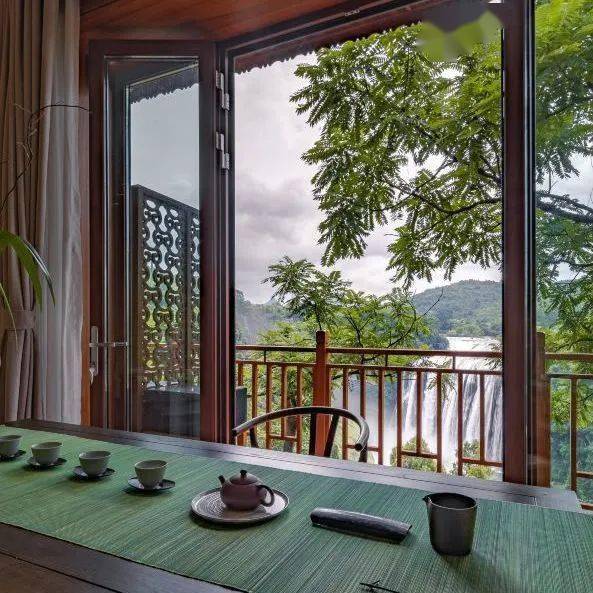 坐在房间内泡上一盏茶,眼前是如画般的自然美景,耳边是瀑布从高处坠落的声音。你想要的悠闲美好,在这里就能找到。