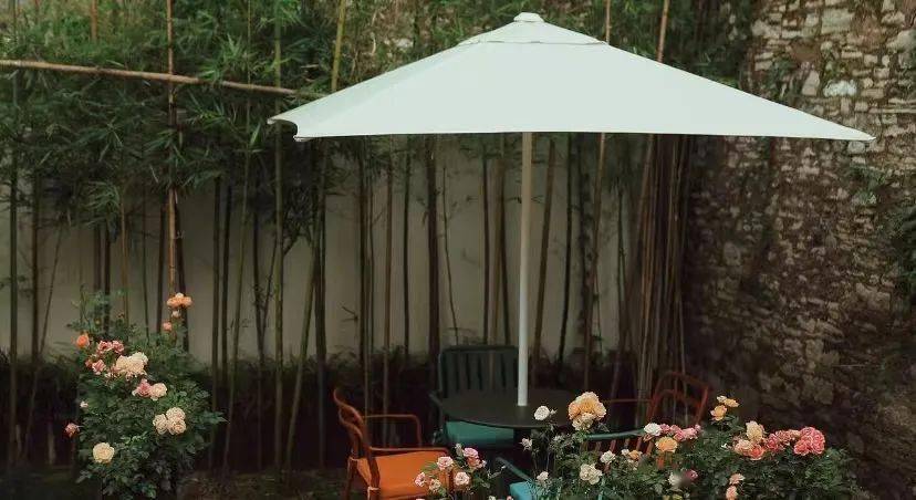 民宿不仅有咖啡厅、餐厅等配套设施,还设计有专属的私家花园。石墙旁的亭子下,种满了美丽花朵,静谧又浪漫,绝对是一个放松闲聊的好去处。