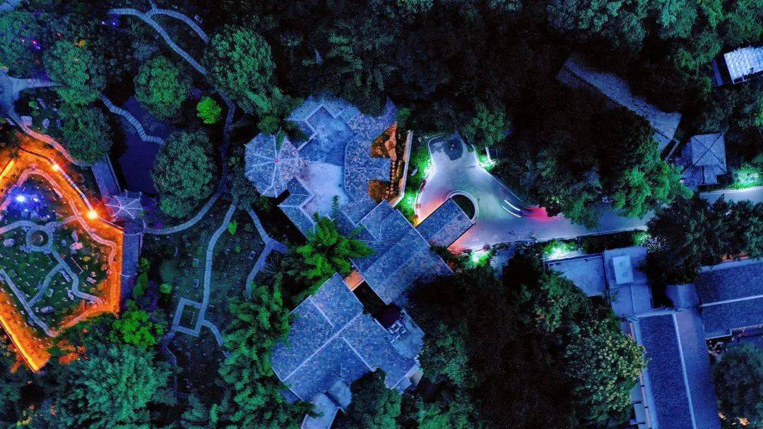 这是一家“藏”在森林与茶田里的民宿,四周放眼望去满是绿意,耳边还能听到蝉鸣鸟叫。