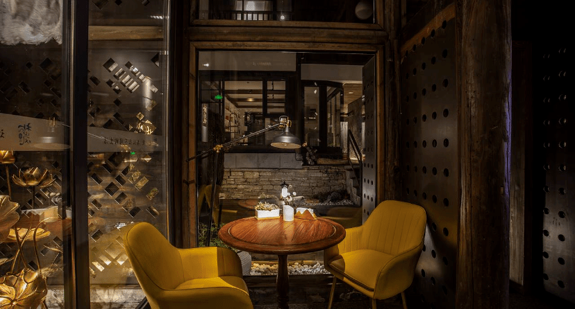 民宿的装修设计十分巧妙,从古建筑风格的入口进来,能看到一间现代风格的休闲咖啡厅,不由得让人眼前一亮。