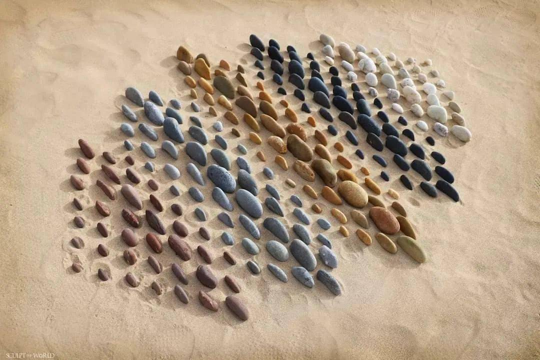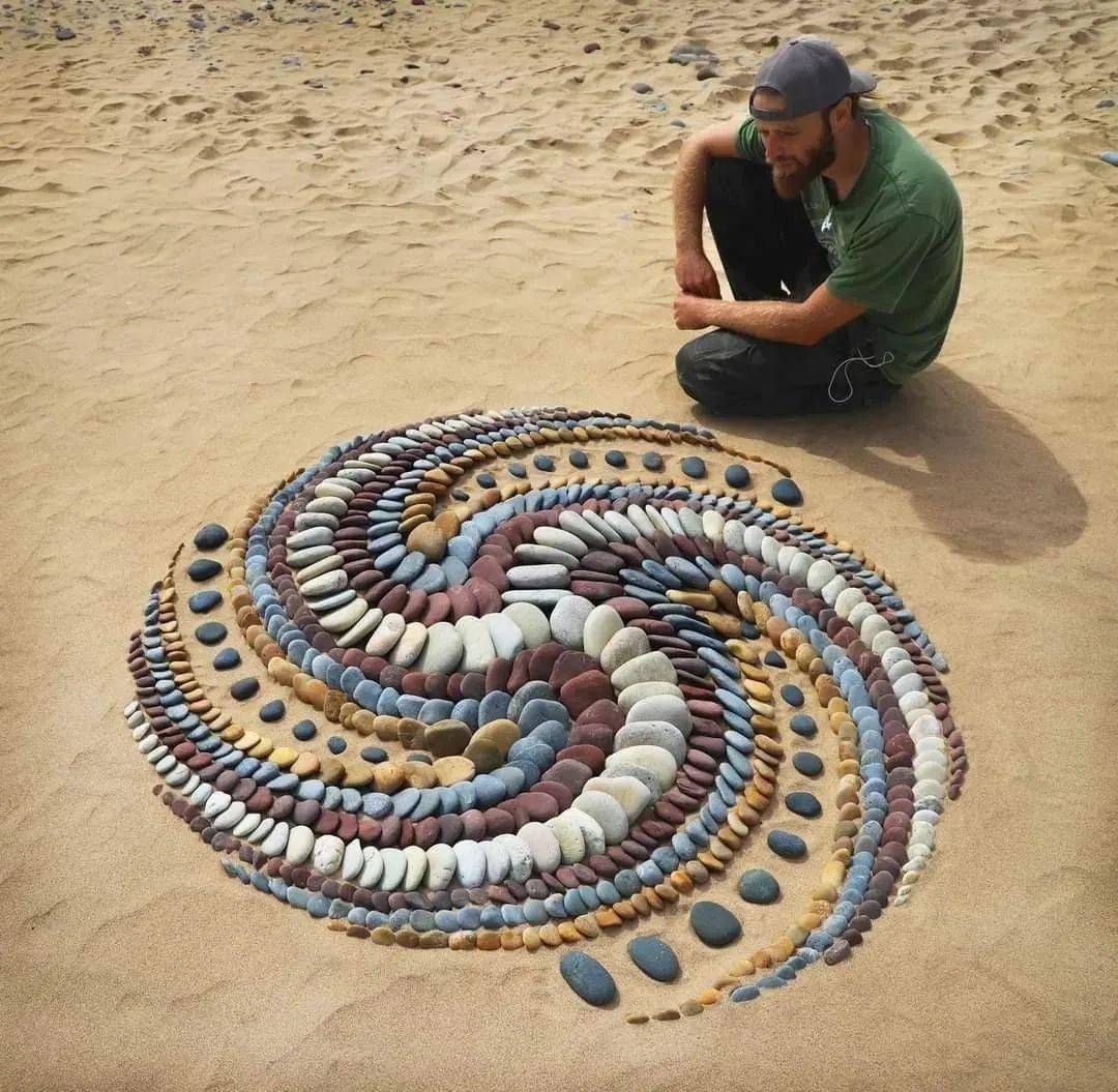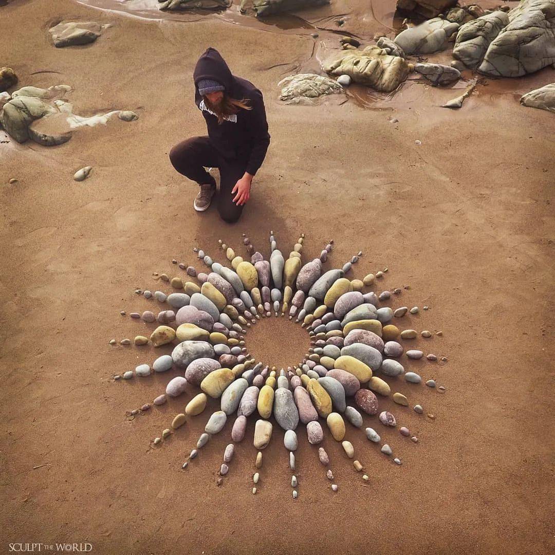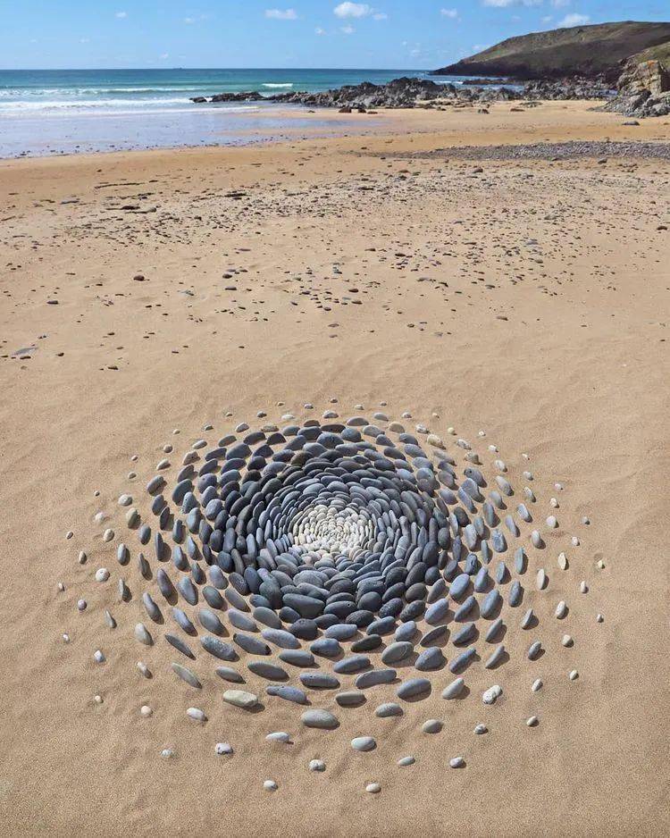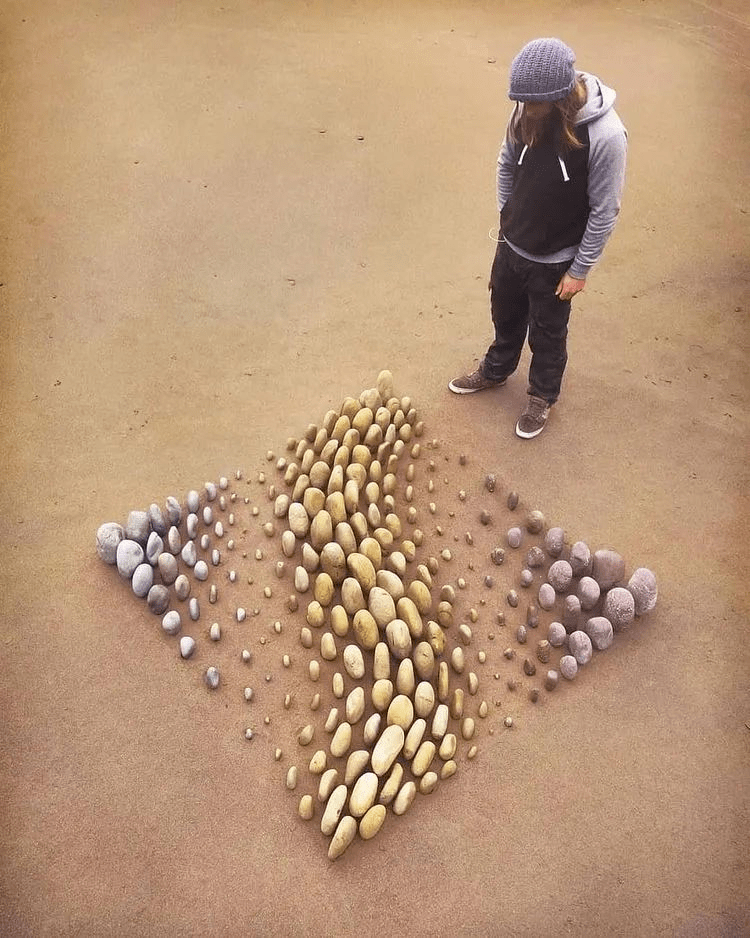作为各种风格的大地艺术的创造者,Jon Foreman一直在寻找“与众不同”。无论是石头还是树叶,内陆还是海滩。他甚至用碎玻璃、灰烬和普通碎片等材料,在废弃的环境中创作作品。他的作品规模大小不一,可能会用石头或浮木来制造一些微小的东西;也可能会用沙子摆出50米宽的大规模沙图。