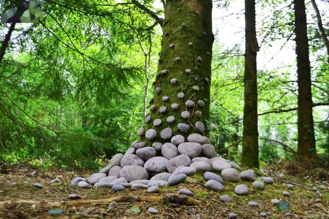 粘在树上的石子点上眼镜,仿如森林里的小精灵
