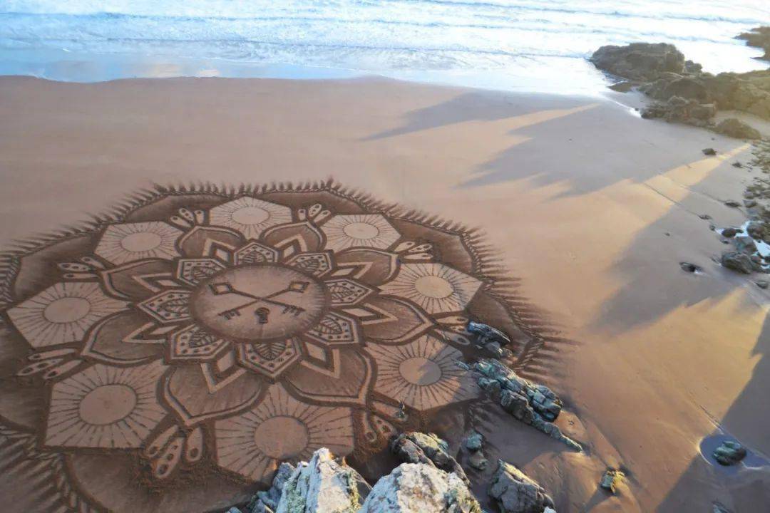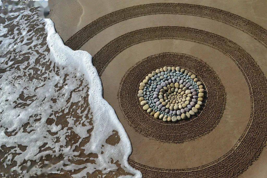 一旦他完成,沙地景观就会被暂时改变,每个短暂的装置最终都会在被地球回收或被潮水冲走后消失......
