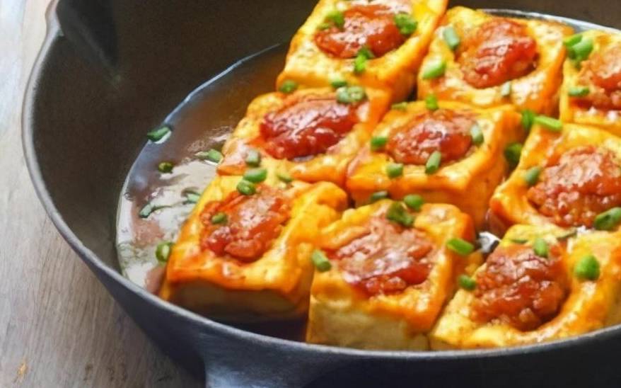 揭西酿豆腐是以猪肉加上少量虾米、马鲛鱼或咸鱼及蒜头,剁成肉酱,塞进豆腐里,用花生油煎炸或清蒸,美味可口,风味独特。