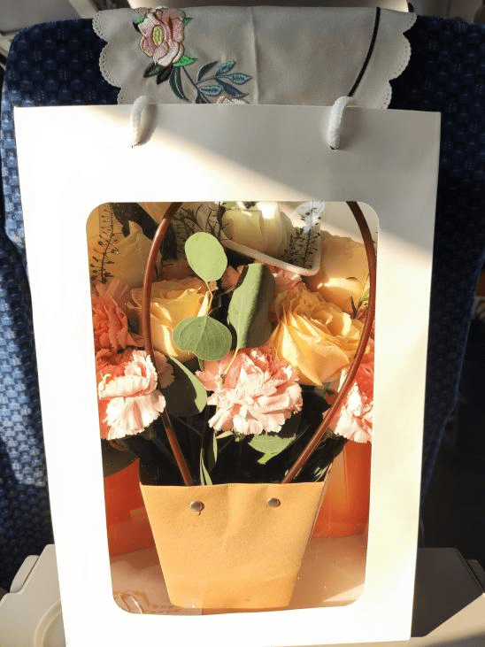 为了庆祝列车通行,官方举行了很多的庆祝活动。每个车厢门前,有工作人员推着行李车,给旅客派送手提鲜花,花瓣上还缀着露珠。