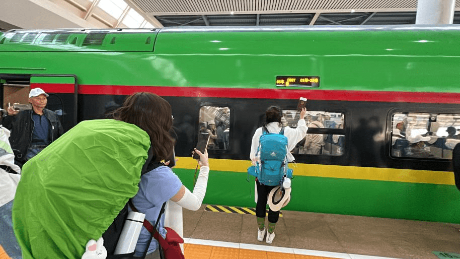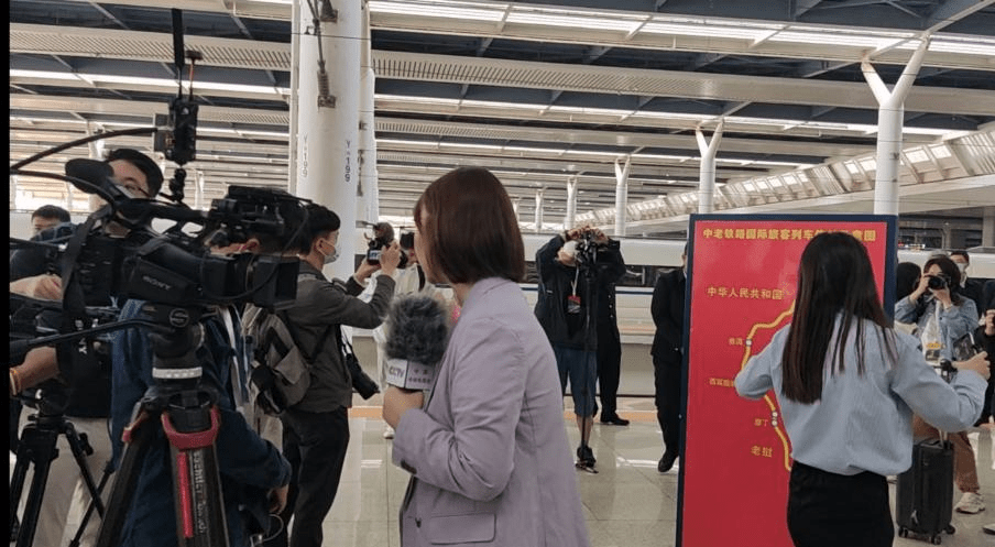 我背着一个绿龟壳般的48L大背包,在人群中特别显眼,几番被媒体镜头捕捉,询问乘坐首发国际列车的感受、对老挝之行有什么期待等问题。