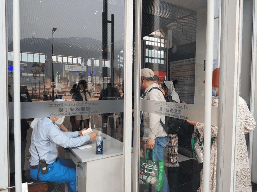 即将抵达中国边境口岸磨憨,列车长决定在下车前将没有签证的乘客集中起来,提供绿色通道至磨憨口岸,乘客从海关出境后自行前往老挝的磨丁口岸(公路口岸)办理落地签,然后自行回到磨丁铁路口岸。