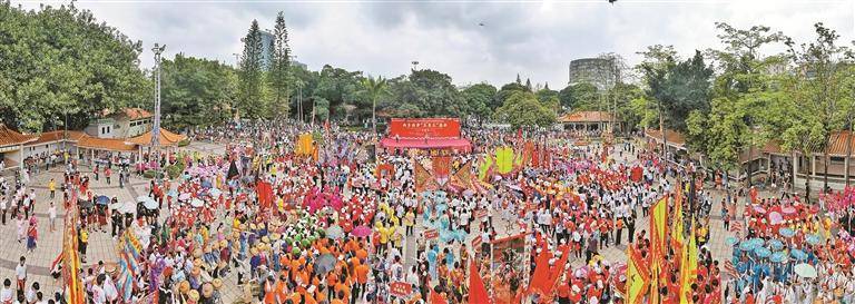 “从2009年开始,‘三月三’庙会得到了西乡街道办的重视和支持,这是因为庙会活动有着坚实的群众基础。近年,庙会无论从规模上,还是影响上都大大地超越了此前历届,成为深圳、大湾区的又一项民间盛事。”黄镇光说,今年是“三月三”庙会入选省级非遗项目后的第一次集中展现,从巡游规模来说,就由原来的60支队伍增加到100支以上,9天的庙会活动可以用恢宏阔大、异彩纷呈来概括。