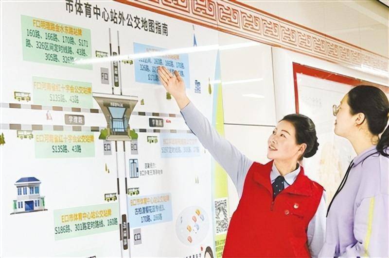 “市体育中心站站外公交地图指南”张贴在乘客下车较易看见的地方,乘客乘坐地铁下车达到地铁站厅层或出入口时,不用出站便能获取到公交换乘信息,实现“地铁到站,公交信息一目了然”。“市体育中心站站外公交地图指南”的张贴,对地铁与公交之间换乘的桥梁作用更加显著。郑州公交第五运营公司对重点公交线路,如乐游巴士停靠出入口及运营时间、热点公交首末班车时间、景区公交出行指南进行培训,地铁车站员工熟练掌握站外重点公交信息,为乘客提供更便捷的出行服务。