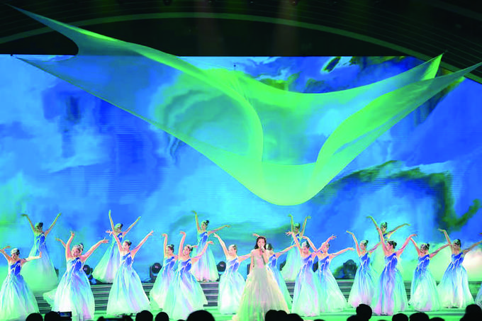 开幕式当天文艺活动精彩纷呈,以丝路、敦煌和海港文化为主题精心编排一系列演出,带领游客揭开连云港厚重绵长的历史面纱。大型实景演出《镜花唐宫奇妙节》,以创意编排和绚烂舞美带领世人穿越唐朝;500架无人机以天为幕,以城为景,流光溢彩、熠熠生辉,以“点点星光”勾勒出本届园博园的盛世奇景;大型焰火晚会将各位游客带入美轮美奂的“焰火园林”,让园博园的夜空显得更加璀璨绚丽。