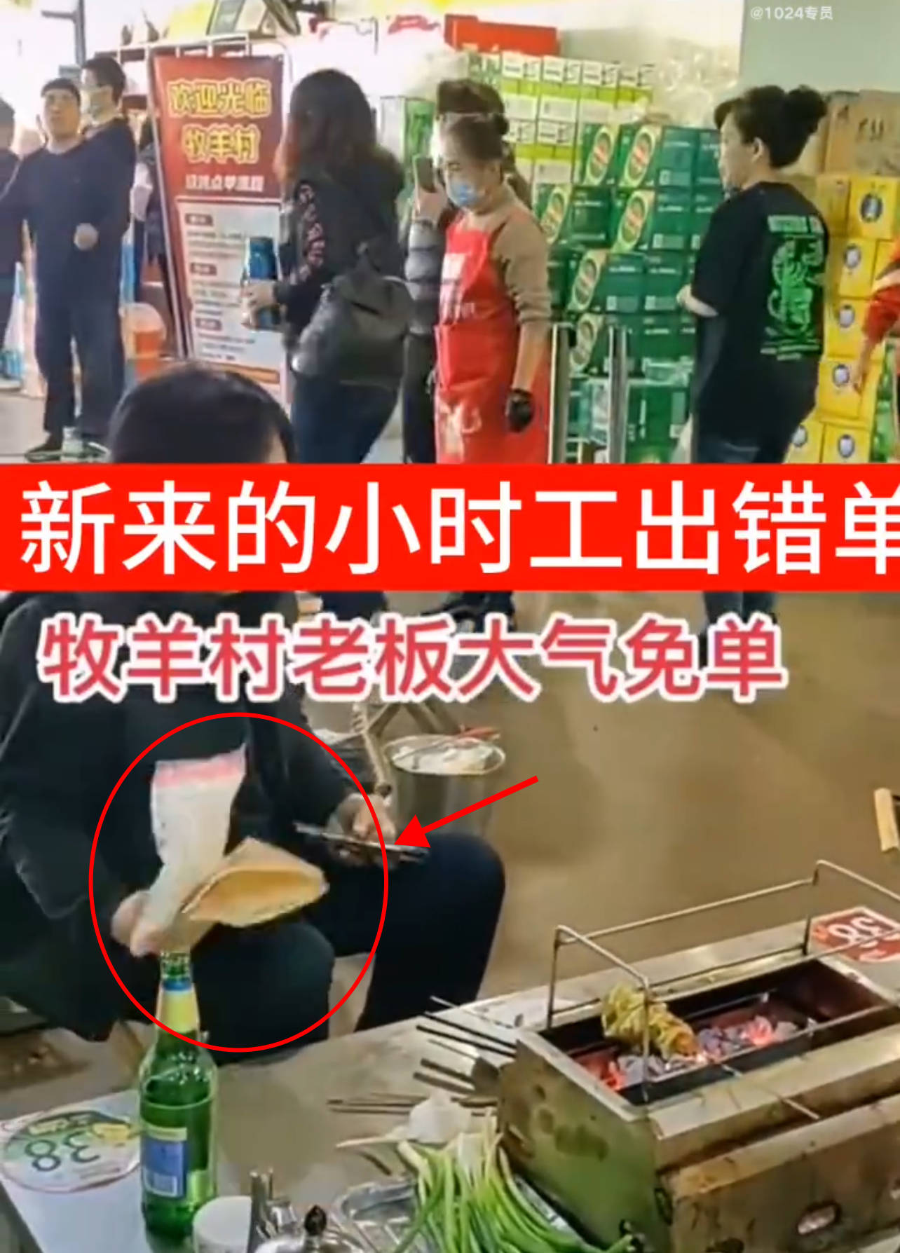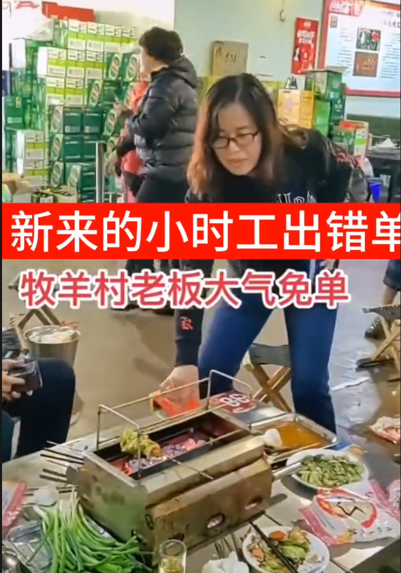老板听到对方的免单要求后,二话不说就同意了,老板端走了刚送上来的烧烤,招呼夫妻游客前去吧台免单。