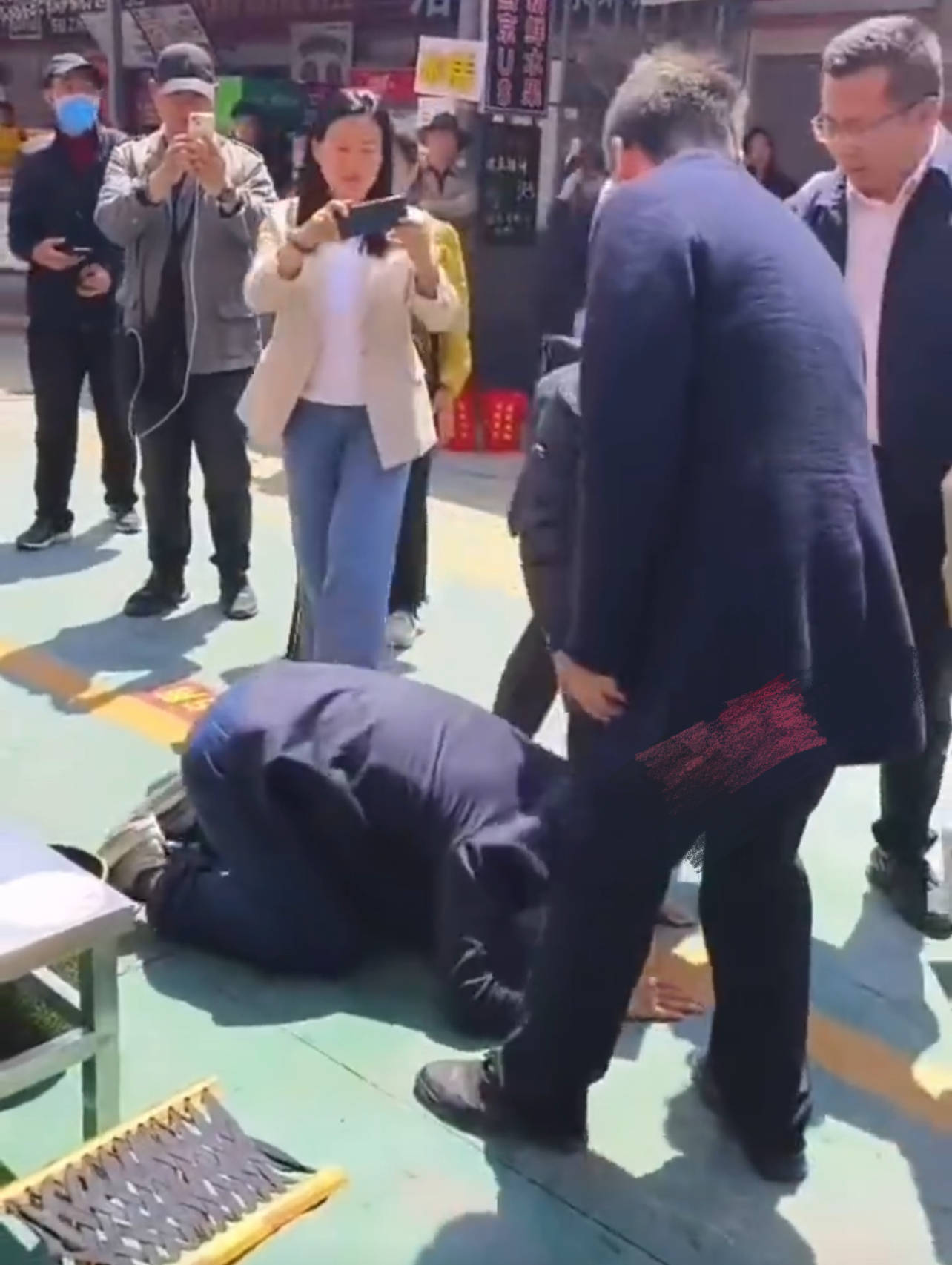 小伙不肯放弃,来到烧烤店门口找老板理论,而且在众目睽睽之下用凉水浇头,还朝着烧烤店鞠躬,小伙的种种举动给了老板极大的压力,如果这样的画面被有心人放到网上炒作,其结果可想而知。老板为了让小伙停止自己的举动,老板当众给小伙下跪,恳求小伙不要再这样做。