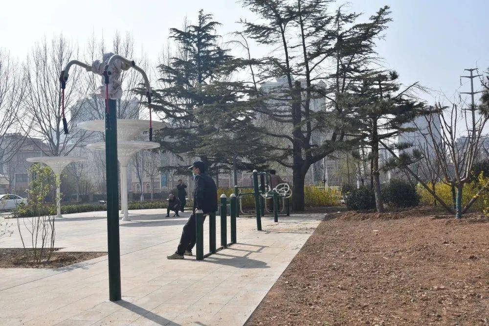 公园保留原有苗木,栽植金叶复叶槭、油松、樱花、美人梅等数十种植物,整个口袋公园三季有花四季长绿,是周边居民“康养+运动”的绿色健康体验新空间。