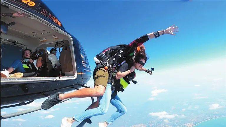 在海棠湾塔赫跳伞基地,从3000多米高空纵身一跃,可享受广阔美景带来的视觉震撼;在龙湾博越飞行基地,游客可玩动力伞、热气球,也可乘坐直升机俯瞰大海。据了解,玩动力伞按人次收费,玩直升机则按照飞行公里收费,最远可从亚龙湾的博后村飞到海棠湾的亚特·兰蒂斯酒店;此外,游客还可以前往陵水红角岭国际滑翔伞飞行营地,感受刺激的滑翔伞运动,换个角度俯瞰大海、树林、农田等美景。