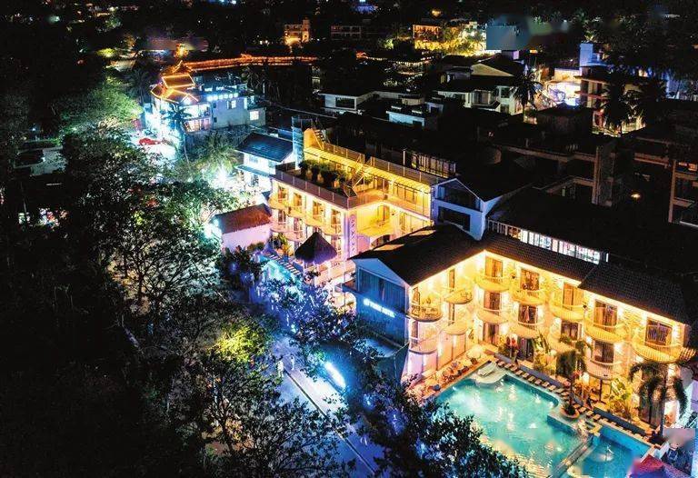 ▲博后村特色民宿夜景迷人。三亚日报记者 刘琪成 摄