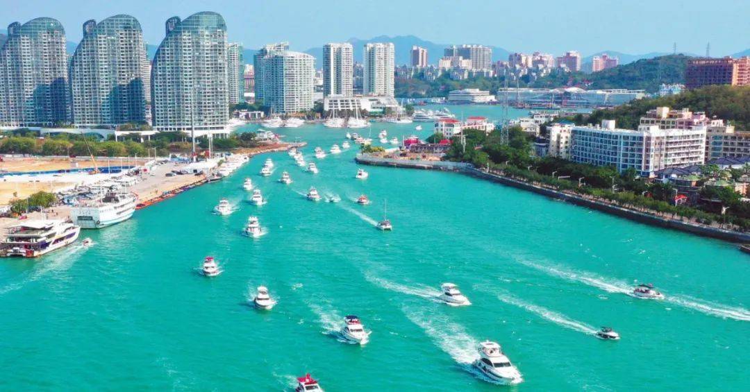 ▲三亚游艇出海火爆,游客们乘坐游艇排队出港。三亚日报记者 陈聪聪 摄