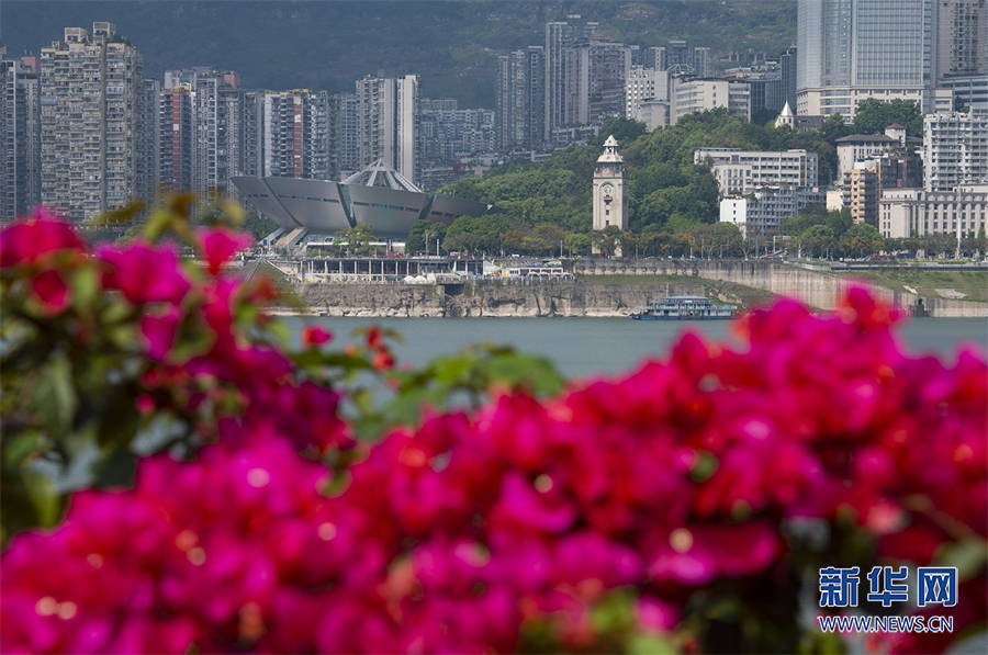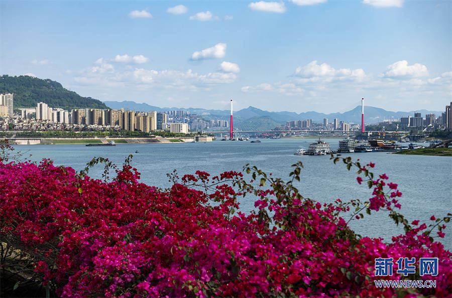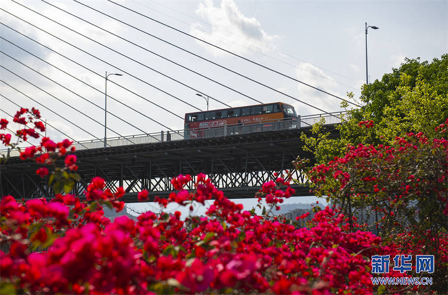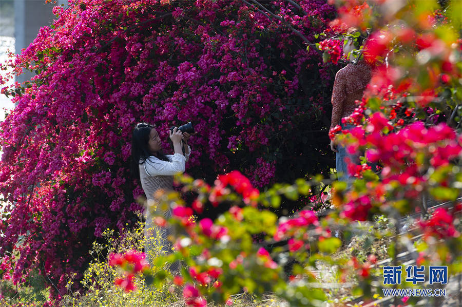 绽放的三角梅将城市装扮得分外美丽。新华网发(冉孟军 摄)