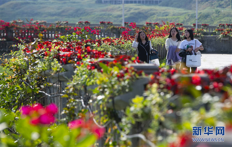 重庆万州长江之滨,百万株三角梅迎风绽放。新华网发(冉孟军 摄)