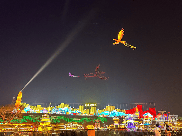 凤凰是华夏民族的精神图腾,象征祥瑞。在扑翼机表演《凤鸣九霄》中,观众能看到凤凰齐飞的景象,以星辰与月色为伴,看一对凤凰在星空夜幕闪耀,与家人好友畅聊生活和理想,享受惬意的夜晚时光。