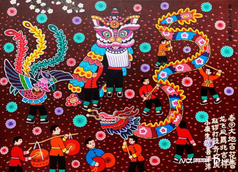 据悉,龙门农民画创作源于剪纸、木雕、壁画等各种民间传统手艺。龙门农民画的“前世”,最早可以溯源到明代弘治年间,来自粤北、粤东等地的移民,将各地用以装饰祠堂、庙宇等建筑的民间绘画技艺带入龙门,为龙门农民画奠定基础。