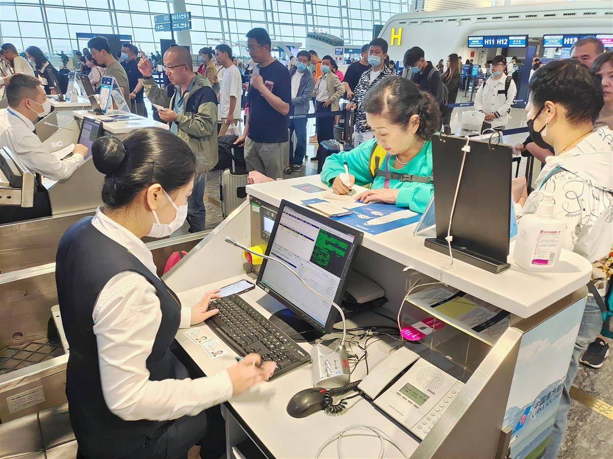 湖北机场集团相关负责人介绍,“五一”假期,武汉天河机场预计起降航班架次总量2869架次,日均起降航班574架次,同比增长191%;预计旅客吞吐总量37.9万余人次,日均客流量达7.6 万人次,同比增长329%。