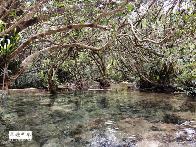 继续往下游走,可以看到水上森林。当然这一段河流很短,其规模远不能与小七孔的水上森林及茂兰的螃蟹沟相比。