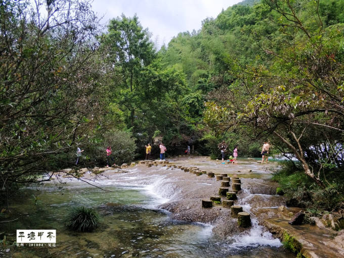 从跳墩上走到河中心,从正中看看甲茶瀑布。