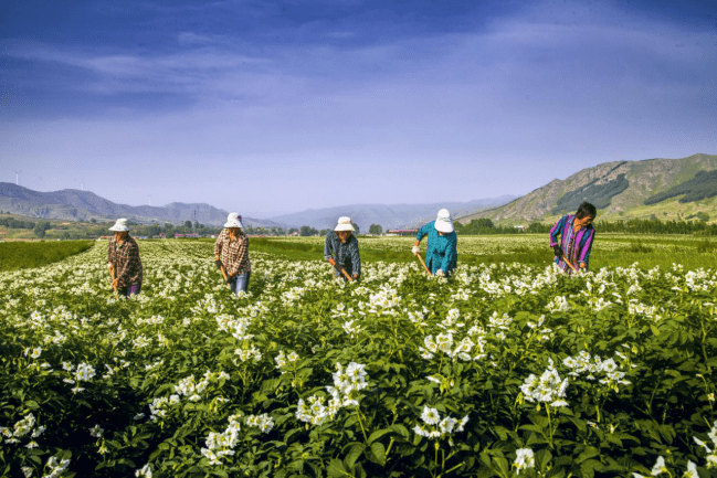 岚县地处山西省西北部、吕梁山深处,气候冷凉、雨热同期、昼夜温差大、土质松软、有机物含量高、农业产业特色鲜明,是土豆种植的“风水宝地”。据《岚县志》记载,清道光年间土豆种植被引入岚县,此后,土豆在这块土地上生根发芽、开花结果,养育了一方百姓,孕育出了独特的土豆文化。岚县所产的土豆色泽光鲜、含淀粉高、不易腐烂,具有比其它地方土豆高蛋白、富维C的特点,且个大体匀、营养齐全,100g的鲜薯中,就含蛋白质4.2g、维生素B1 0.68g、维生素B2 0.52mg、维生素C25.6mg,均高于全国平均水平,整体口感以沙、香、甜而圈粉无数。