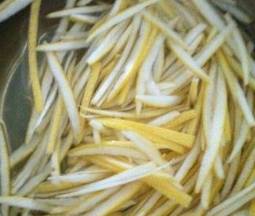 用小刀在黄色果皮和白色果皮交界处轻轻划一刀,沿着口子慢慢切下来。白色果皮吸水能力很强,如果不去除,会影响精华液的提取。切出来的黄色果皮改成细条,切得越细越好。