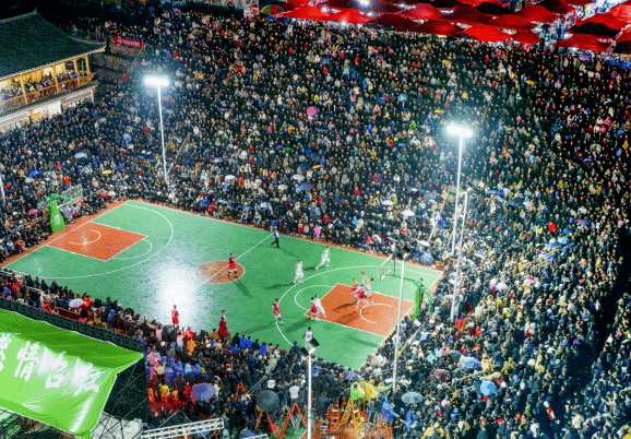 沿着看台楼梯步行到“村BA”广场俯瞰“村BA”球场全景,然后上车返程。