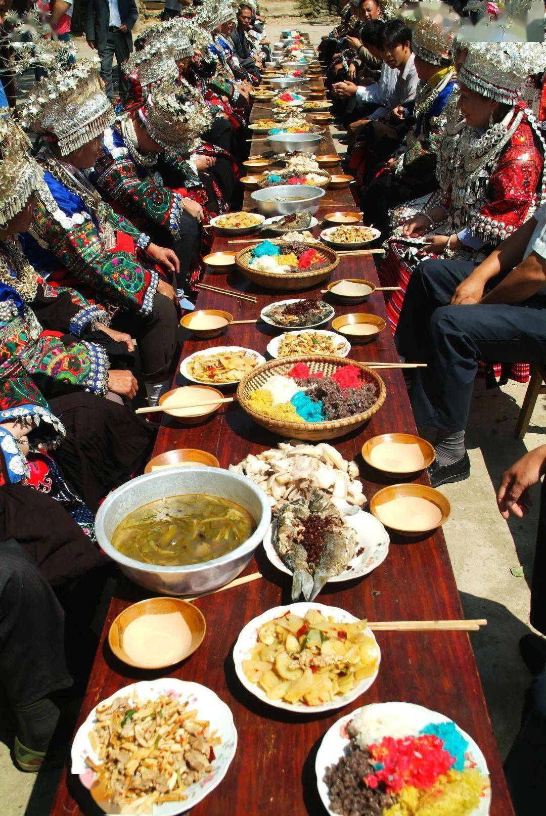 苗族长桌宴是苗族宴席的最高形式与隆重礼仪,可品尝苗族的传统佳肴,古藏肉、苗王鱼、白切鸡,在一片欢乐祥和中体验苗家“高山流水”,饮用苗家自酿米酒,享用苗族地道美食。