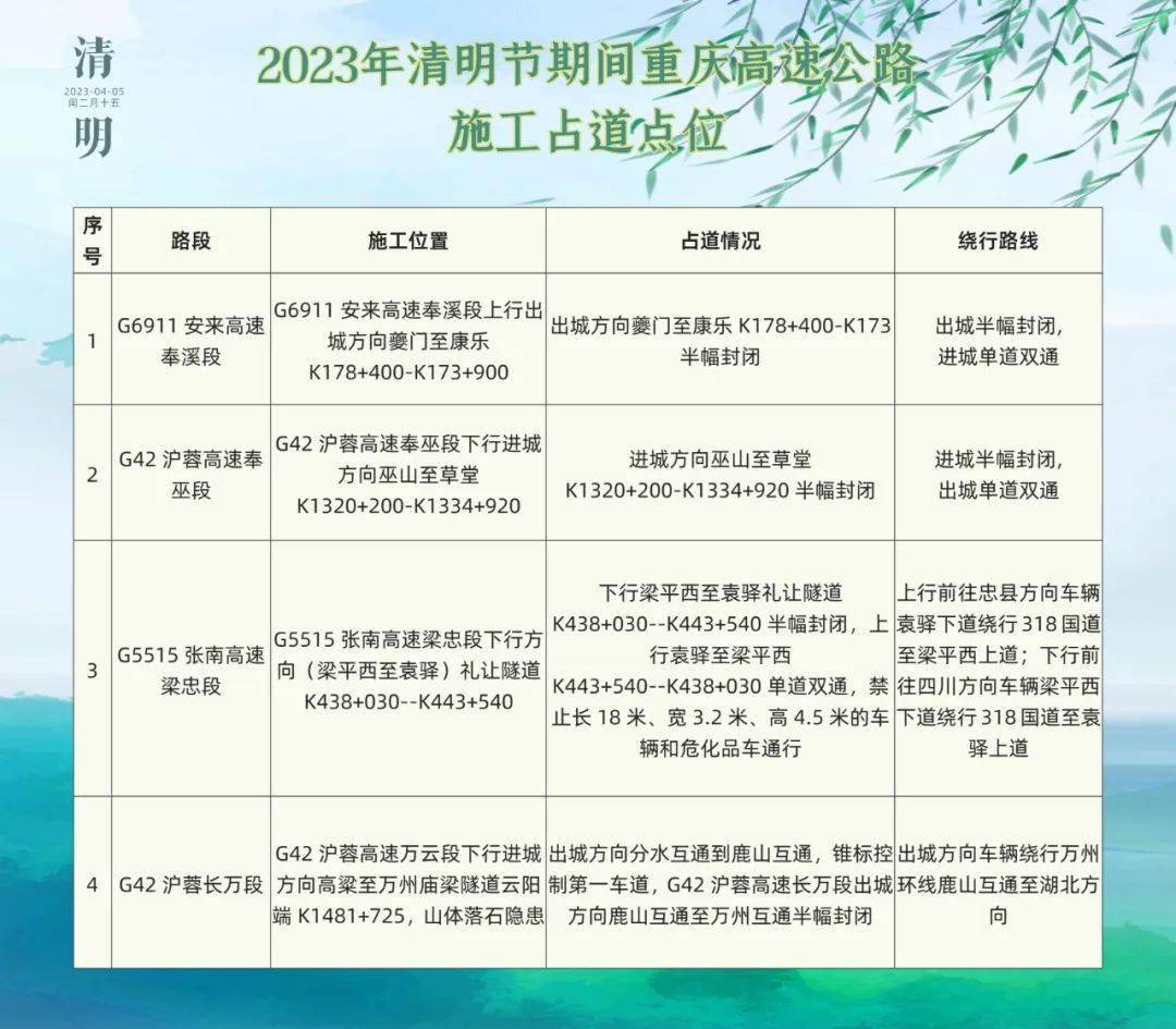 重庆高速公路2023年清明节