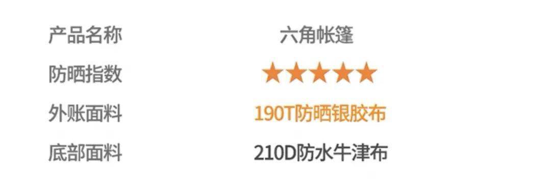 防晒+防水面料:夏季出游,除了防暑就是防雨,原始人将190T防晒银胶布+190T防水PU布应用到帐篷的布料上,做全帐篷覆盖,不仅防晒防水,还有隔热效果,直击消费者潜在需求。