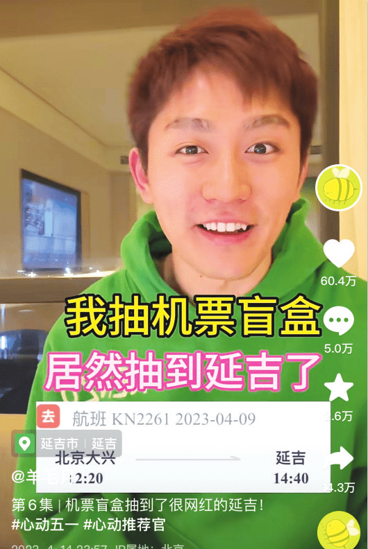 近日,抖音博主@羊毛月的三段“盲盒机票”延吉之旅收获了网友百万点赞,他的语言没有华丽的辞藻、没有绚丽的修饰,用简单的语言将延吉之美娓娓道来,吸引了更多人对延吉的向往。现在,越来越多的网友都在“许愿”,期待“盲盒机票”能抽中延吉市为目的地。
