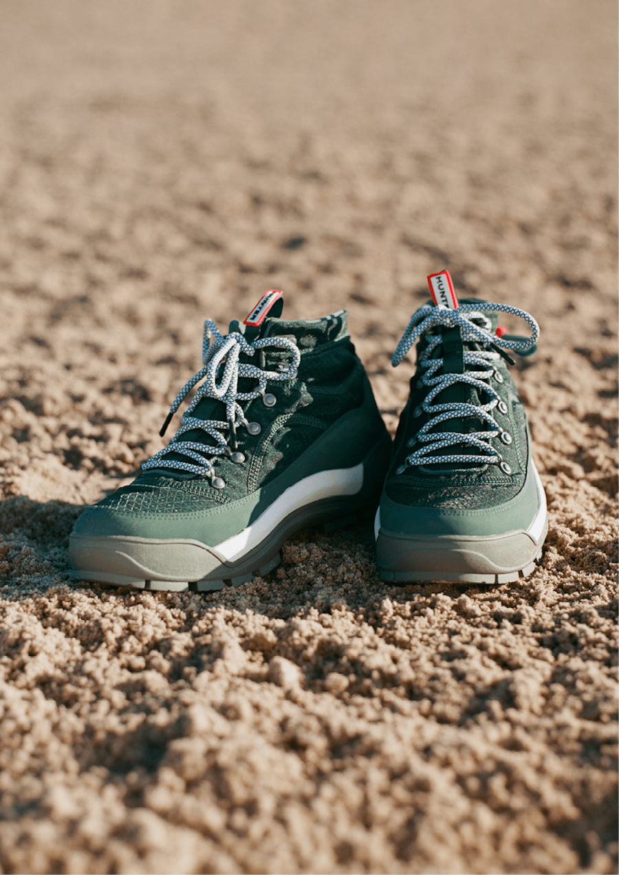 凭借着创新的设计、专业的面料和工艺,人们通过服装能够体验到与自然合二为一的生活方式。Hunter本季推出全新旅行系列,以便携、轻便、低饱和度的风格为设计特色。同时,品牌表示,自2023春夏系列起,品牌86%的产品将采用对环境影响较低的环保材料,包括FSC®认证的天然橡胶、BLOOM藻类泡沫与可回收织物等。此外,环保可回收材质鞋面、内衬和鞋垫的引入也降低了品牌对于原生材料的依赖性。