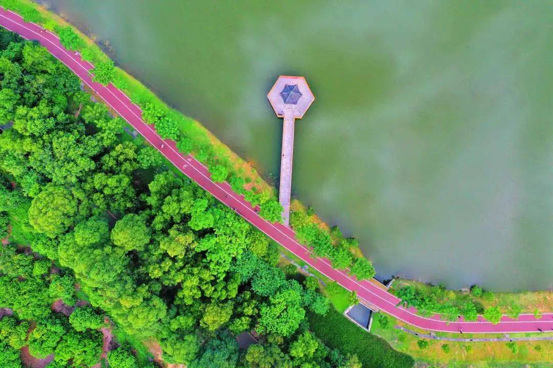环冈社区大塘休闲文化公园依塘而建,公园中心是一个宽阔的月牙形池塘,水清澈见底,波光粼粼,让人心旷神怡。池塘四周环绕着一条绿道,在此漫步,十分惬意。