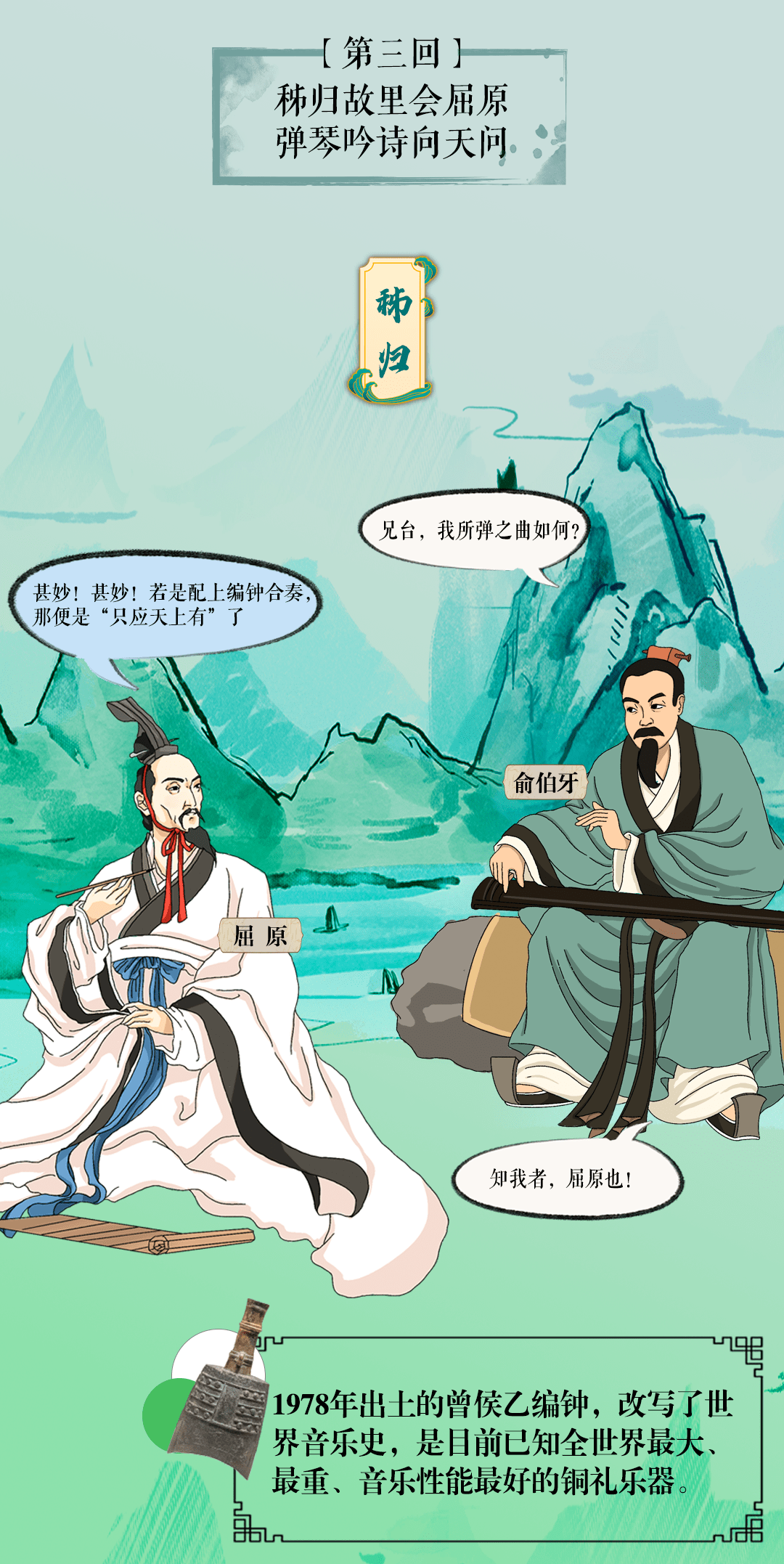 两度弹奏的《高山流水》,将荆楚文化中极具代表性的知音文化,以及钟子期和俞伯牙的故事带入人们视野。