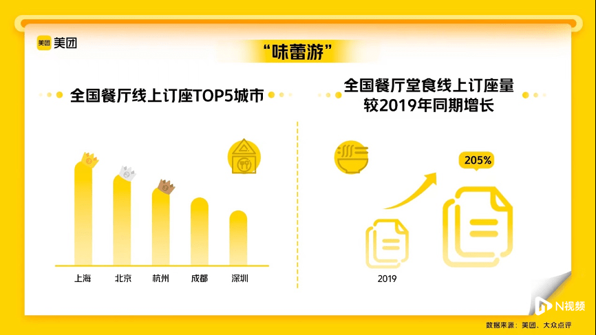 而在即将到来的五一假期,全国整体餐饮行业还有望迎来一波经营高峰。美团数据显示,截至4月23日,全国五一餐厅堂食线上订座量较2019年同期增长了205%。餐厅提前预订热度最高的城市分别为上海、北京、杭州、成都和深圳。在品类上,除火锅、粤菜、西餐、日料等传统热门菜系受追捧外,江浙菜、京菜、湘菜、东北菜等特色地方菜的预订量涨幅明显,成为今年餐饮消费的新趋势。