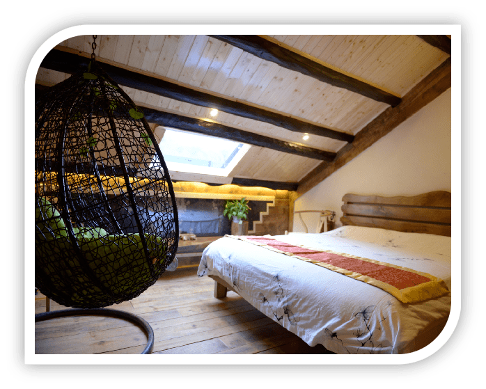 十里花溪由镇坪传统建筑物改造而来。一幢两层小楼,屋顶铺上了灰瓦,乡土气息迎面扑来,保留了镇坪传统建筑物的特点,配上各种个性装饰,巧妙又温馨,处处弥漫着一种让人瞬间安静下来的家的味道。