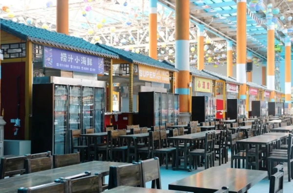 库尔勒美食广场位于库尔勒市兰干路西段,总建筑面积约34239平方米,共规划摊位150余个。项目核心业态包括大型365天全时段经营夜市、酒吧、超市、餐饮、儿童娱乐等,荟萃全国风味特色美食,大型舞台高品质节目不间断演艺,千人换装将现代审美与传统元素相结合,营造沉浸式文化体验氛围。统一运营管理,通过全新的商业模式、精准的业态定位,在库尔勒市打造一个集旅游、美食、购物、住宿为一体的具有文化属性的潮玩打卡地。