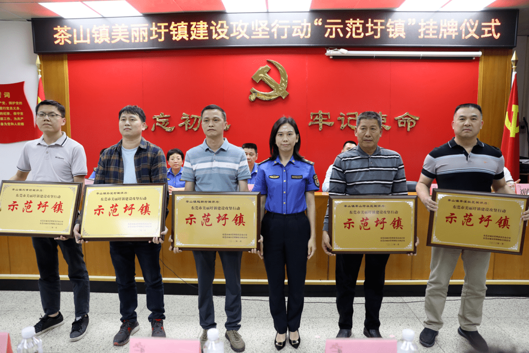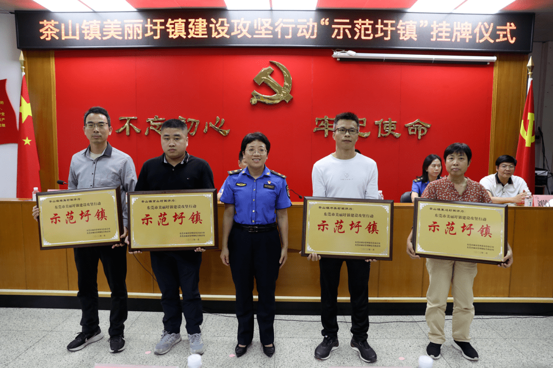 △昨天,茶山举行美丽圩镇建设攻坚行动“示范圩镇”挂牌仪式,为获评“示范圩镇”的18个村(社区)颁发牌匾。市城市管理综合执