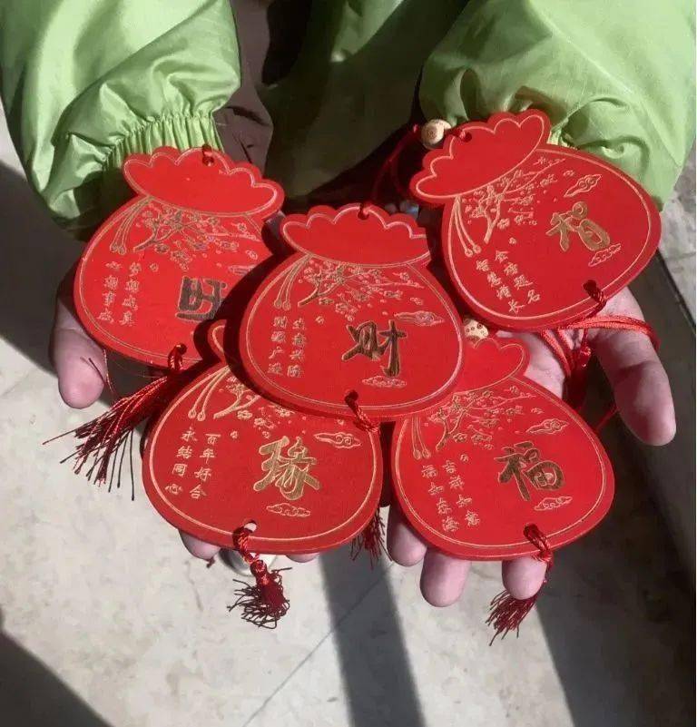 祈福牌上有福、缘、平安、顺等多种美好寓意,可根据自己所需选择或者一并纳入囊中,把心愿写在祈福牌上,挂与树梢,成为集万千宠爱于一身的最强锦鲤。
